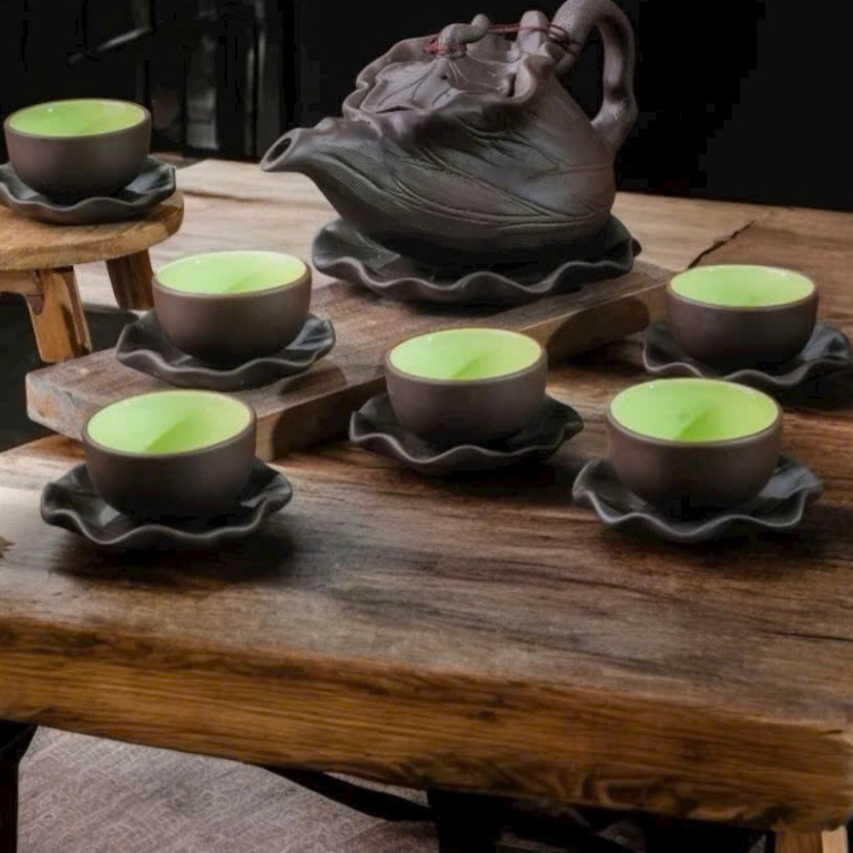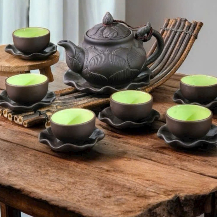 + Bộ ấm chén đất nung được làm thủ công từ phôi đất mềm với tạo hình khéo léo và đa dạng, giúp tăng hương vị mọi loại trà nhờ vào những thành phần khoáng vi lượng có trong nguyên liệu sản xuất.