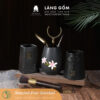 – Ống đựng dụng cụ: gốm đen, với thiết kế khắc hình hoa sen hoặc quạt