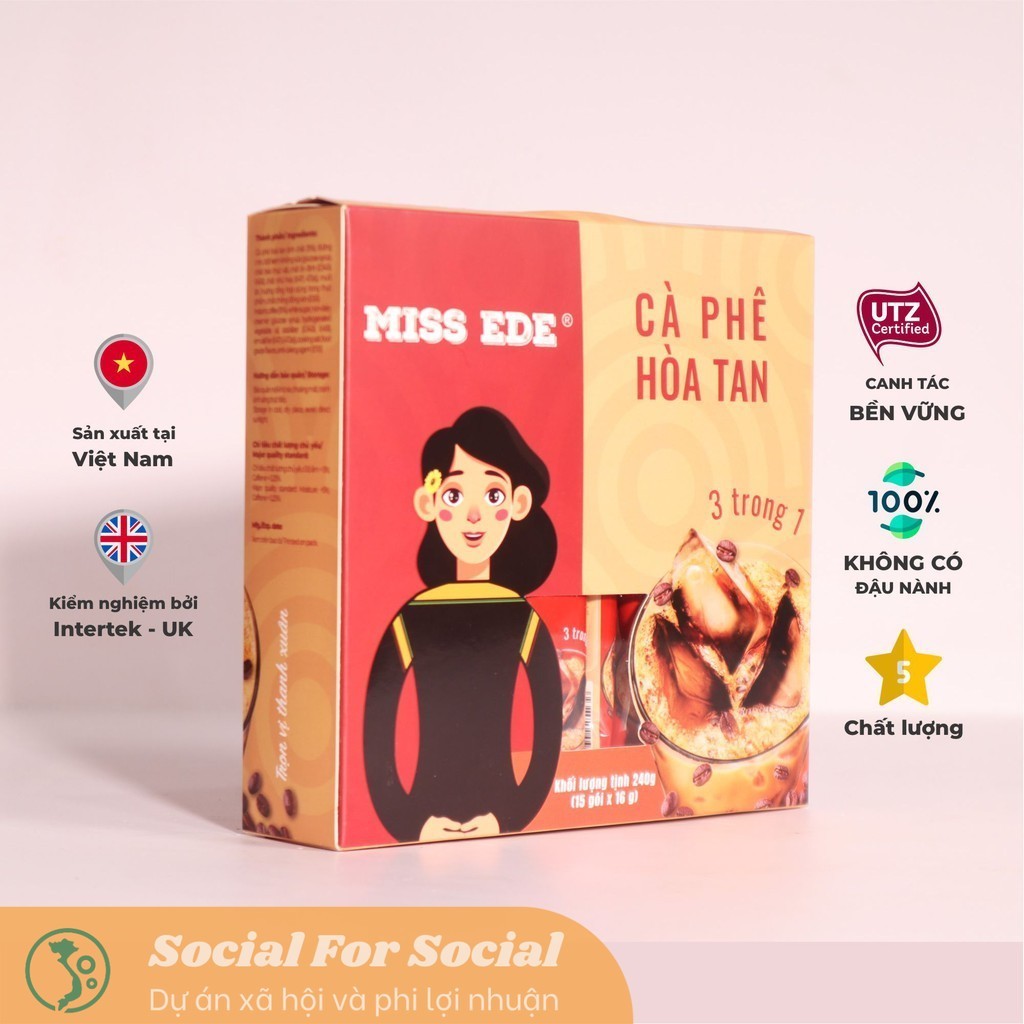 Cà phê hoà tan tinh chất (15%), đường mịn, bột kem không sữa (glucose syrup, chất béo thực vật, chất ổn định (E340ii, E451i), chất nhũ hoá (E471, 472e)), muối ăn, hương tổng hợp dùng trong thực phẩm, chất chống đông vón (E551). Instant coffee (15%), white sugar, non-dairy creamer (glucose syrup, hydrogenated vegetable oil, stabilizer (E340ii, E451i), emulsifier (E471, E472e)), cooking salt, food grade flavors, anti-caking agent (E551)