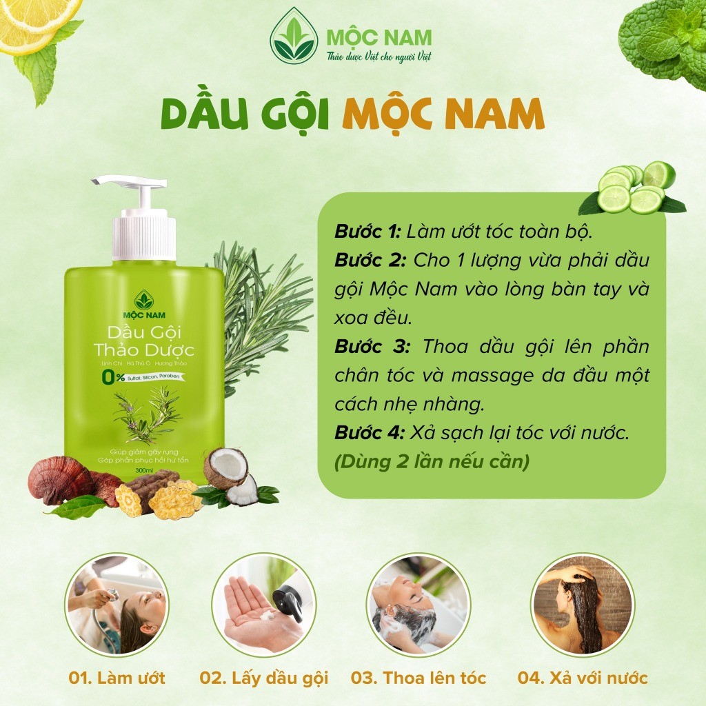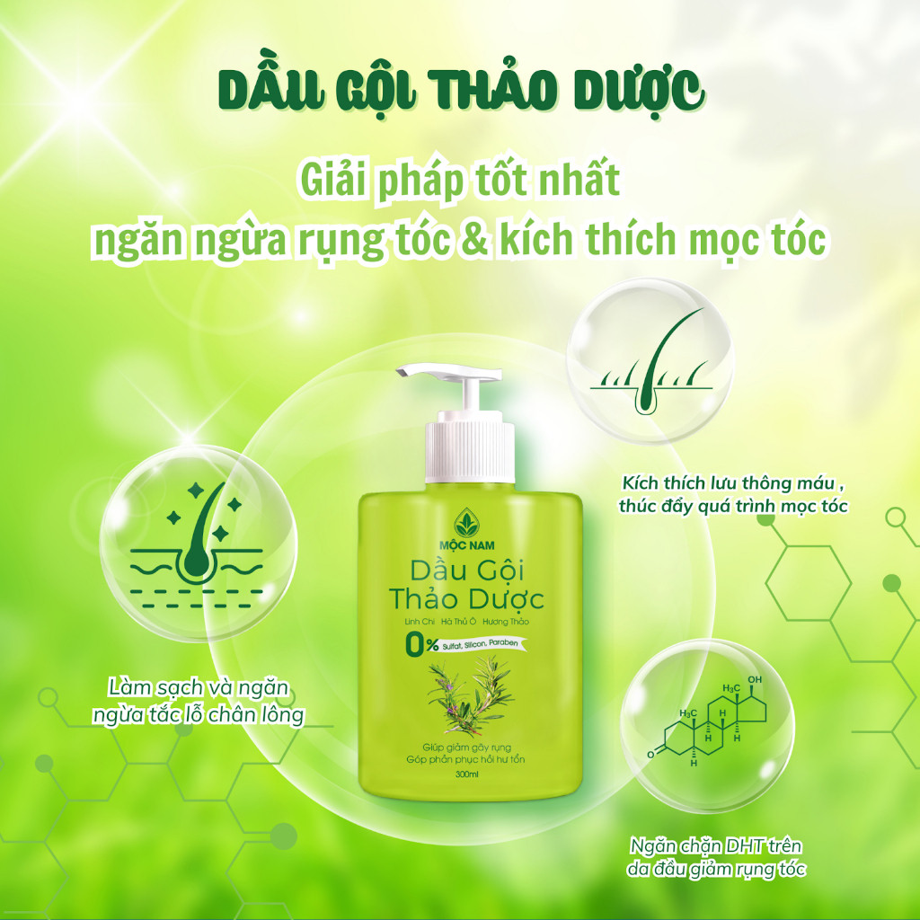 Dầu gội thảo dược Mộc Nam 300ml – Giảm rụng tóc – Làm sạch nhẹ dịu – Nuôi dưỡng tóc chắc khỏe từ gốc