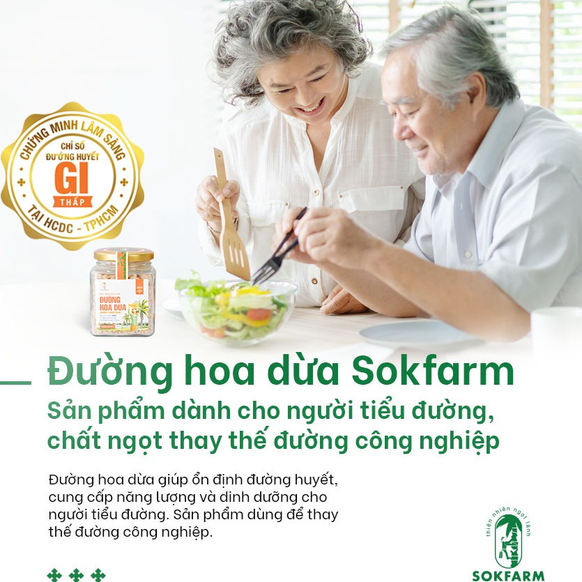 Đường hoa dừa là sản phẩm được chế biến từ 100% mật hoa dừa tươi. Sản phẩm có chỉ số đường huyết thấp, giàu chất ngăn ngừa lão hóa, phù hợp cho người tiểu đường, ăn kiêng, giúp giảm căng thẳng hiệu quả.