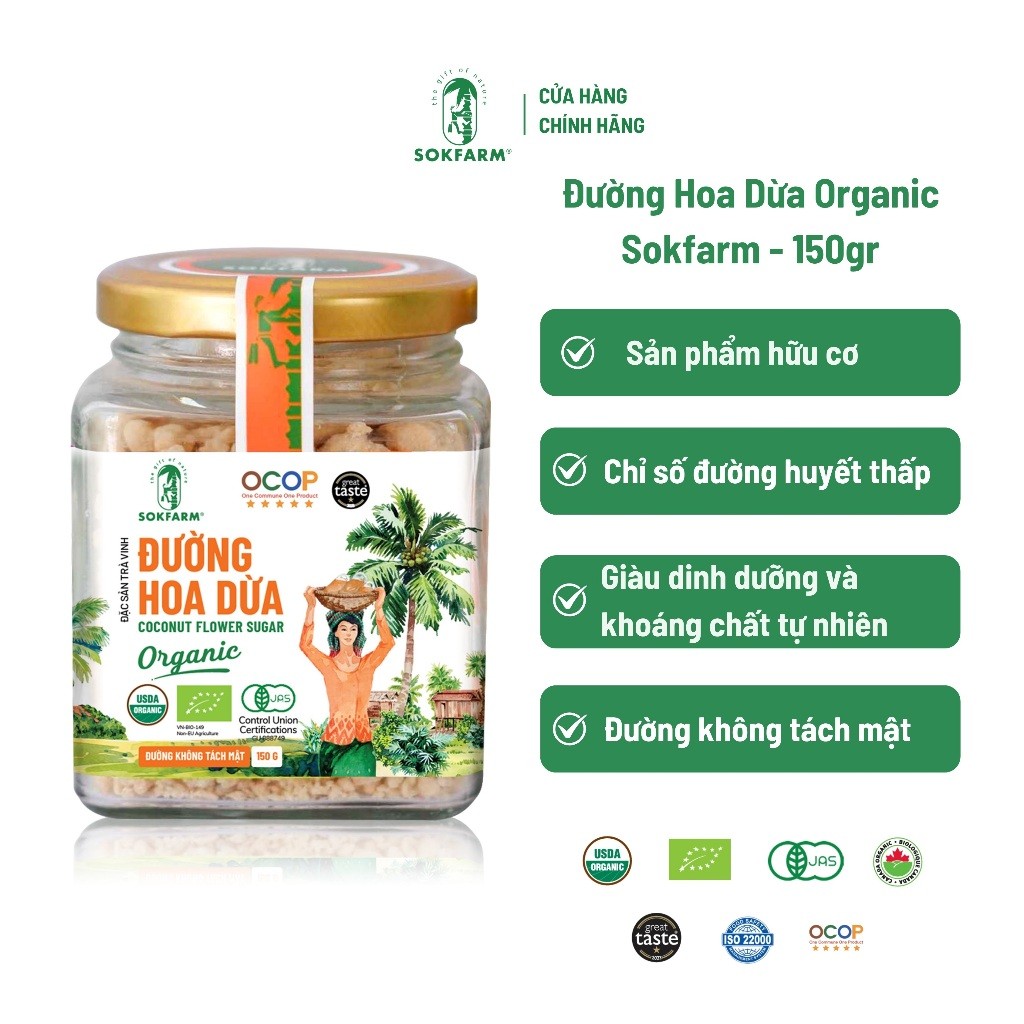 100% đường hoa dừa, KHÔNG TÁCH MẬT và chế biến ở nhiệt độ thấp.