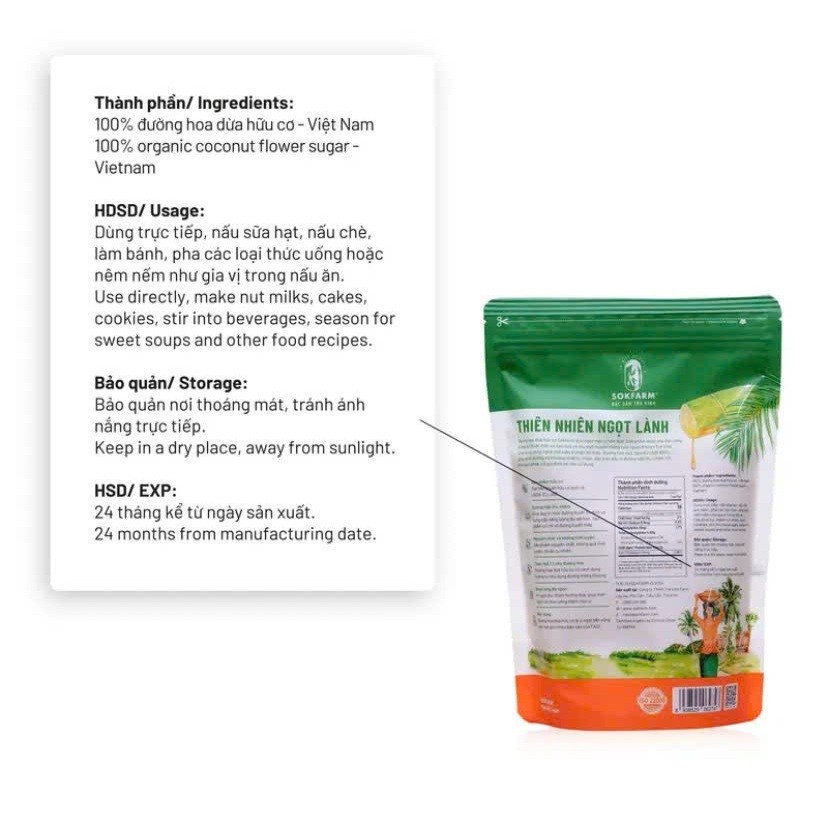 Đường hoa dừa organic Sokfarm hỗ trợ g.Cân
