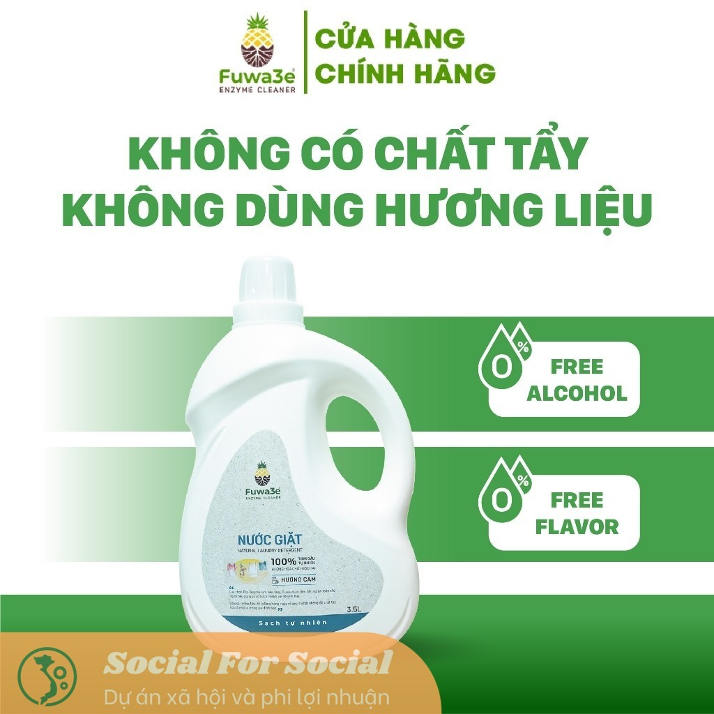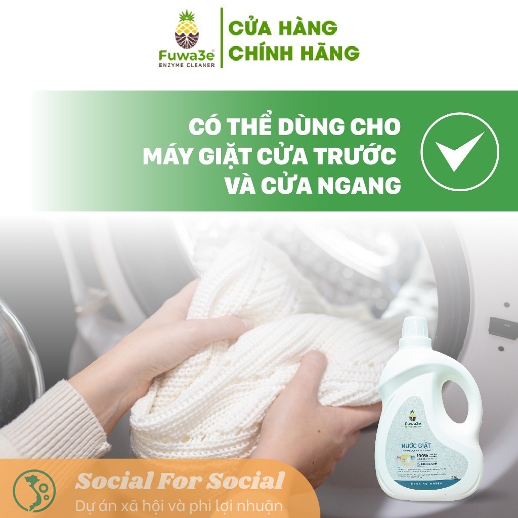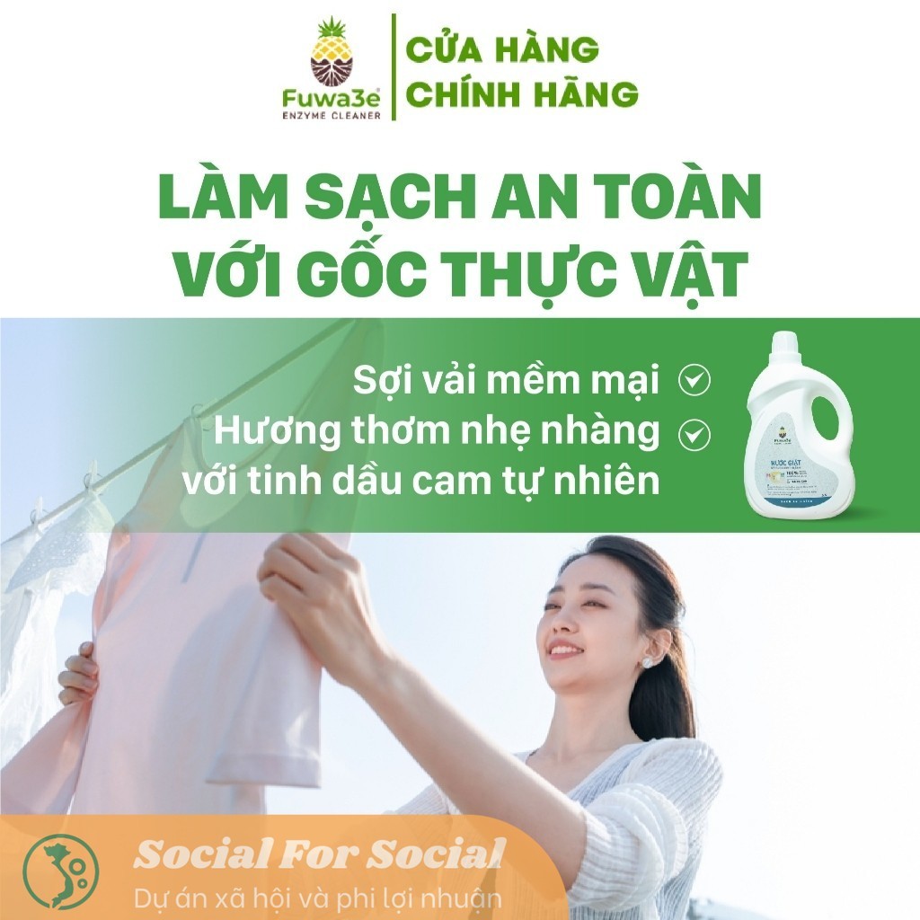 Là nhà sản xuất nước giặt tự nhiên có thành phần chính được lên men từ DỨA: các acid hữu cơ và enzyme làm nhiệm vụ phân tách chất bẩn. Ngoài tiêu chí đảm bảo giặt sạch, thơm, nước giặt Fuwa3e còn an toàn tuyệt đối, không hại da tay. Đặc biệt rất phù hợp cho quần áo trẻ em.