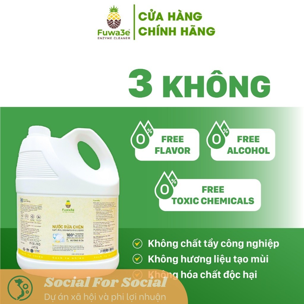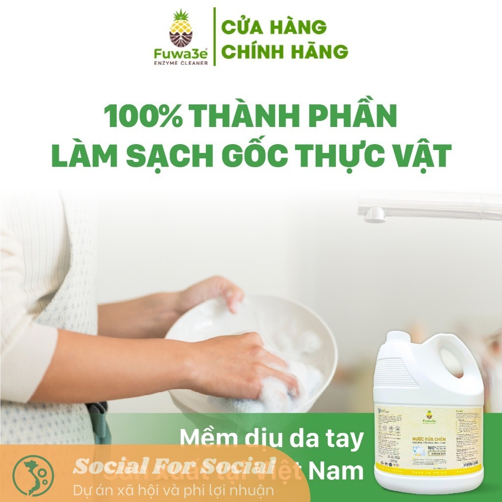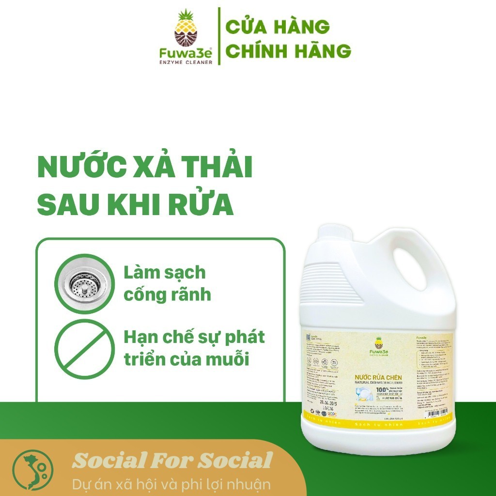 * Thông tin Nước rửa chén bát Fuwa3e hữu cơ 100% organic từ chế phẩm Enzyme sinh học 3.8L an toàn cho bé bảo vệ da tay