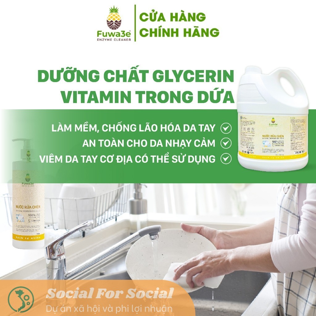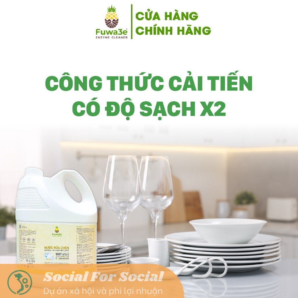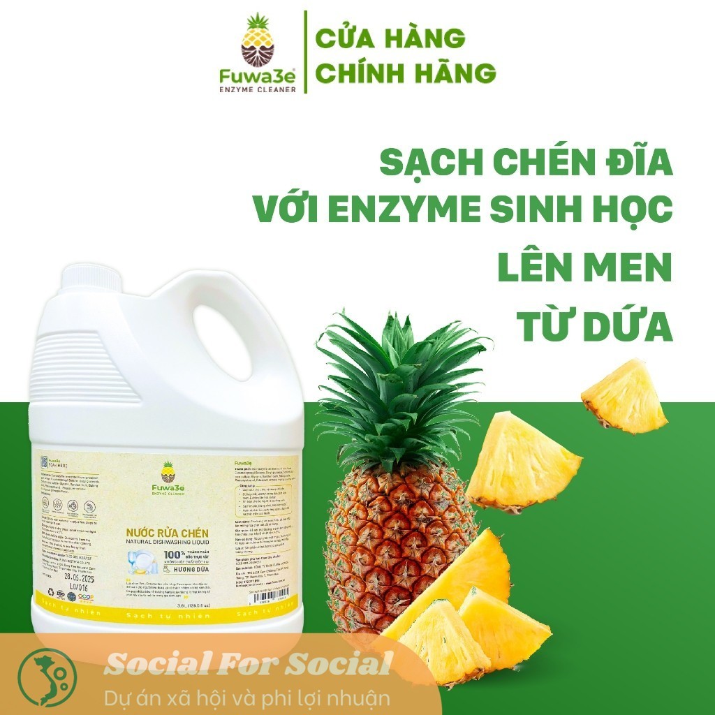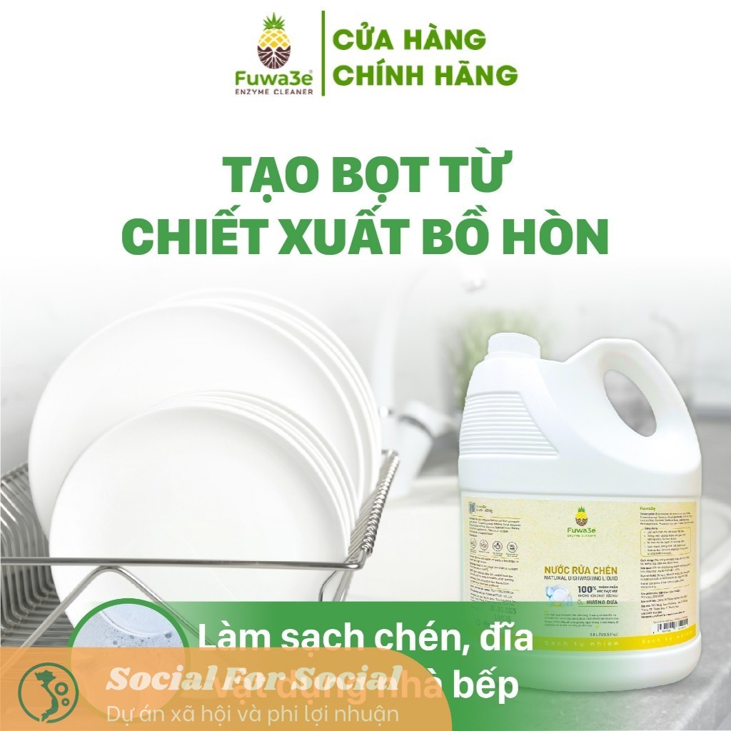 * Thông tin Nước rửa chén bát Fuwa3e hữu cơ 100% organic từ chế phẩm Enzyme sinh học 3.8L an toàn cho bé bảo vệ da tay