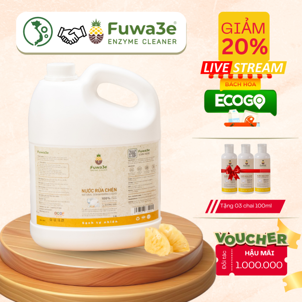 [Ecogo Live][Tặng 3 chai 50k] Nước Rửa Chén Bát Fuwa3e Hữu Cơ Enzyme Sinh Học Organic 3.8L An Toàn Cho Bé Bảo Vệ Da Tay