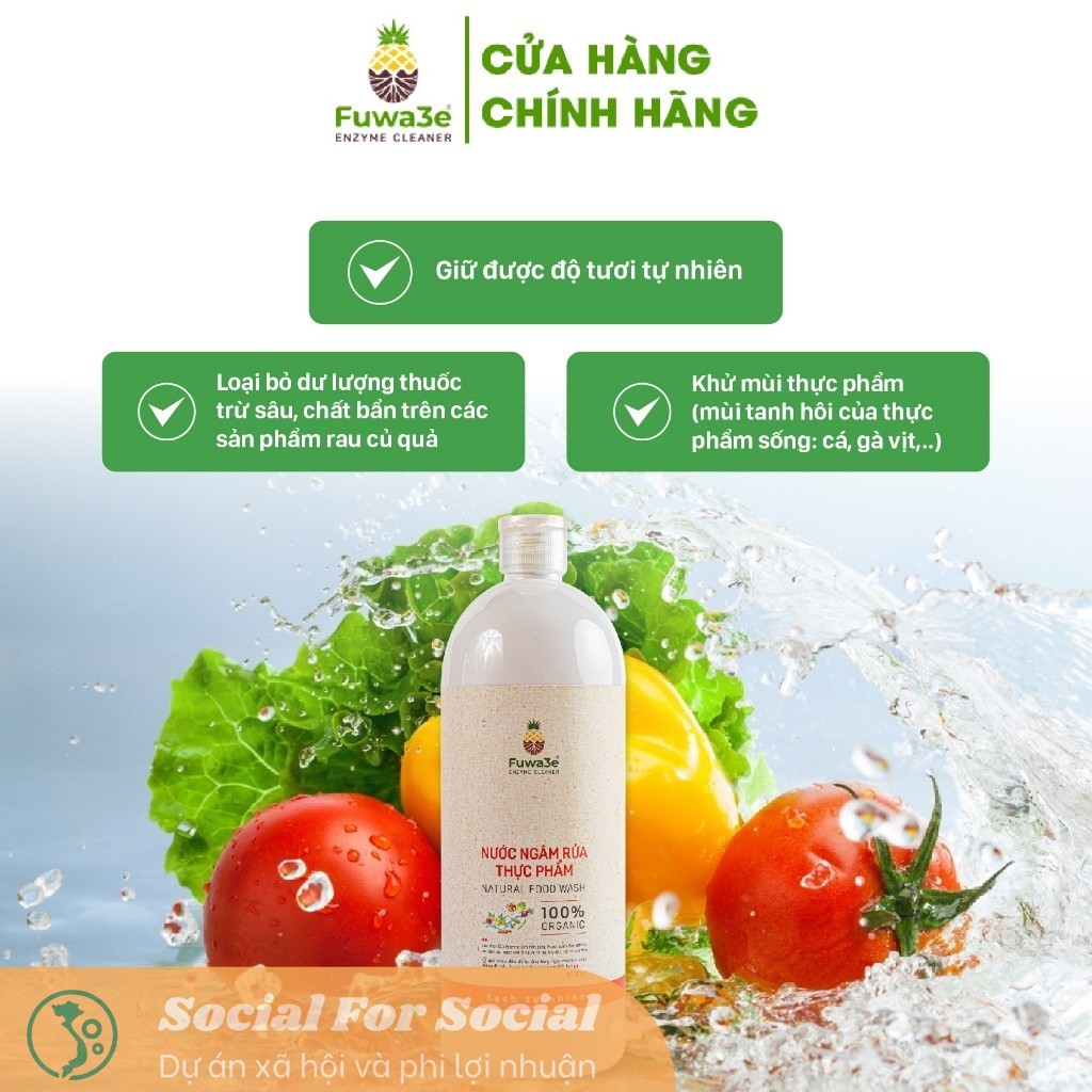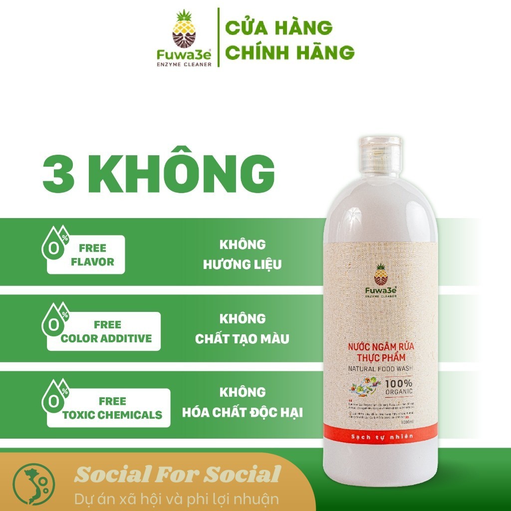[Hỏa tốc] [Mua 2 giảm 10%] Nước Ngâm Rửa Thực Phẩm Fuwa3e Hữu Cơ Organic Khử Mùi Loại Bỏ Thuốc Sâu Chất Bẩn 1L