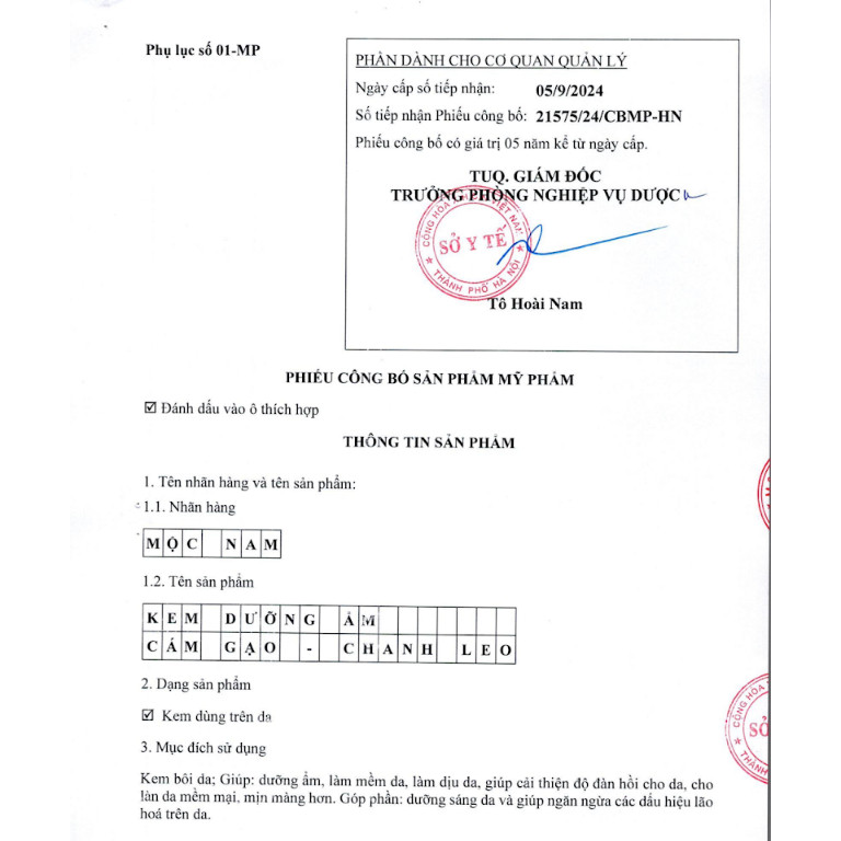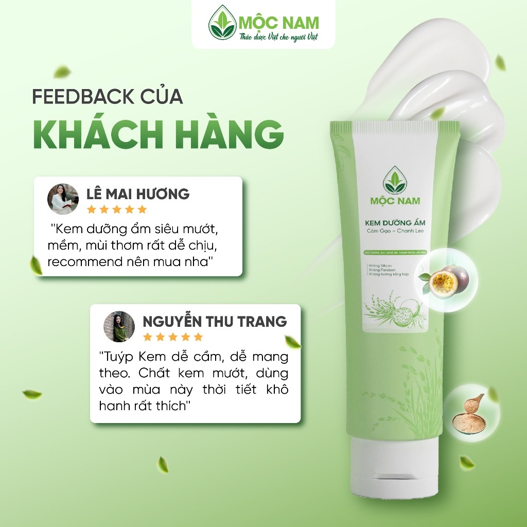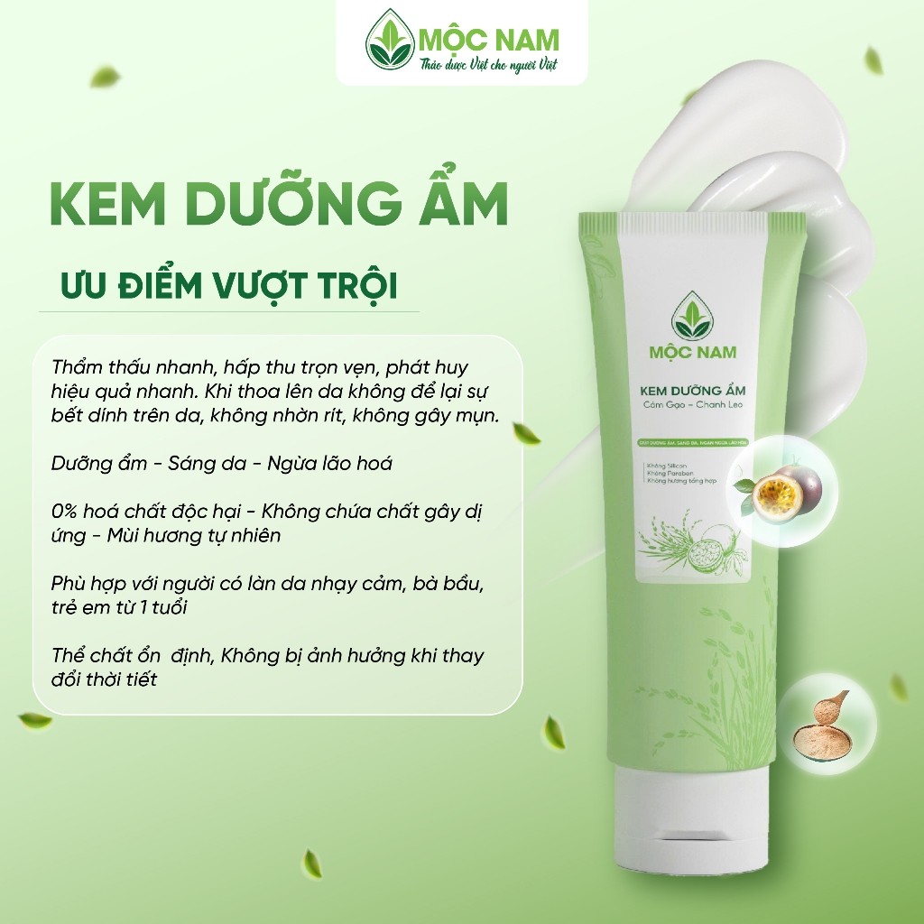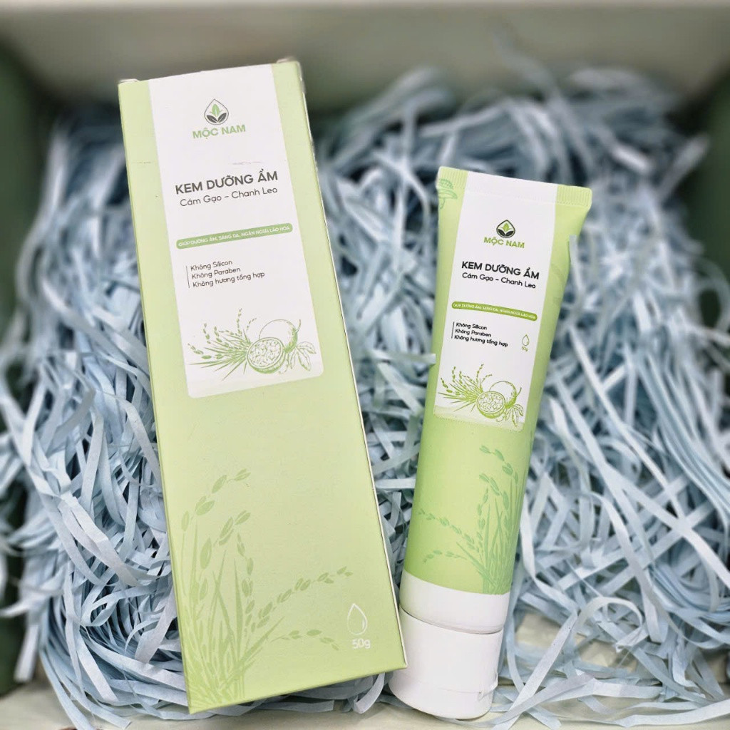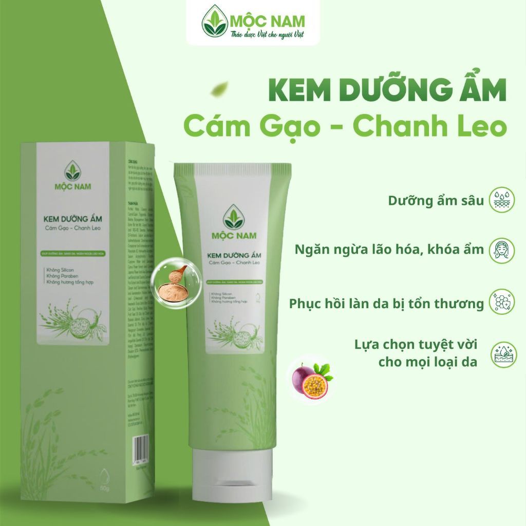 Kem dưỡng ẩm Cám Gạo – Chanh Leo Mộc Nam ứng dụng công thức từ thảo dược Việt, an toàn lành tính, giúp dưỡng ẩm chuyên sâu, làm mềm da, cải thiện độ đàn hồi, cho làn da căng bóng, mịn màng.