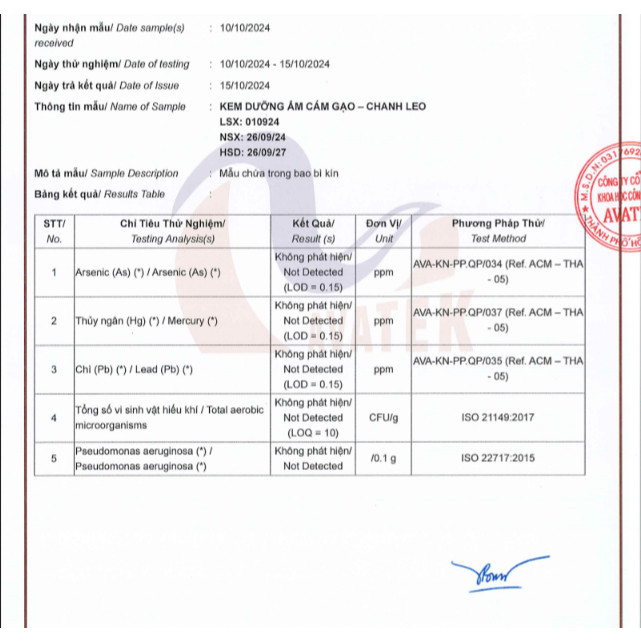Purified Water, Cetearyl Alcohol, Caprylic/Capric Triglyceride, Glycerin, Betaine, Shea Butter (Butyrospermum Parkii), Glyceryl Stearate (and) PEG-100 Stearate, Panthenol (D-Panthenol), Sodium Acrylate/Acryloyldimethyl taurate/Dimethylacrylamide Crosspolymer (and) Isohexadecane (and) Polysorbate 60, Hydroxyethyl Acrylate/Sodium Acryloyldimethyl Taurate Copolymer, Chiết xuất Hoa Thanh Cúc, Hoa Trà Nhật, Lô Hội, Xương Rồng, Butylene Glycol, Glycerin, Men Saccharomyces, Aureobasidium Pullulans Ferment, 1,2-Hexanediol, Ethyl Hexanediol, Oryza Sativa Bran Oil (Dầu Cám Gạo), Passiflora Edulis Seed Oil (Dầu hạt Chanh Leo), Bisabolol, Allantoin, Citrus Limon Peel Essential Oil (Tinh dầu Vỏ Chanh), Pelargonium Graveolens Essential Oil (Tinh dầu Phong Lữ), Lavandula Angustifolia Essential Oil (Tinh dầu Oải Hương), Dipotassium Glycyrrhizinate, Disodium EDTA, Phenoxyethanol (and) Ethylhexylglycerin.