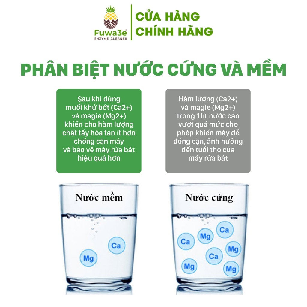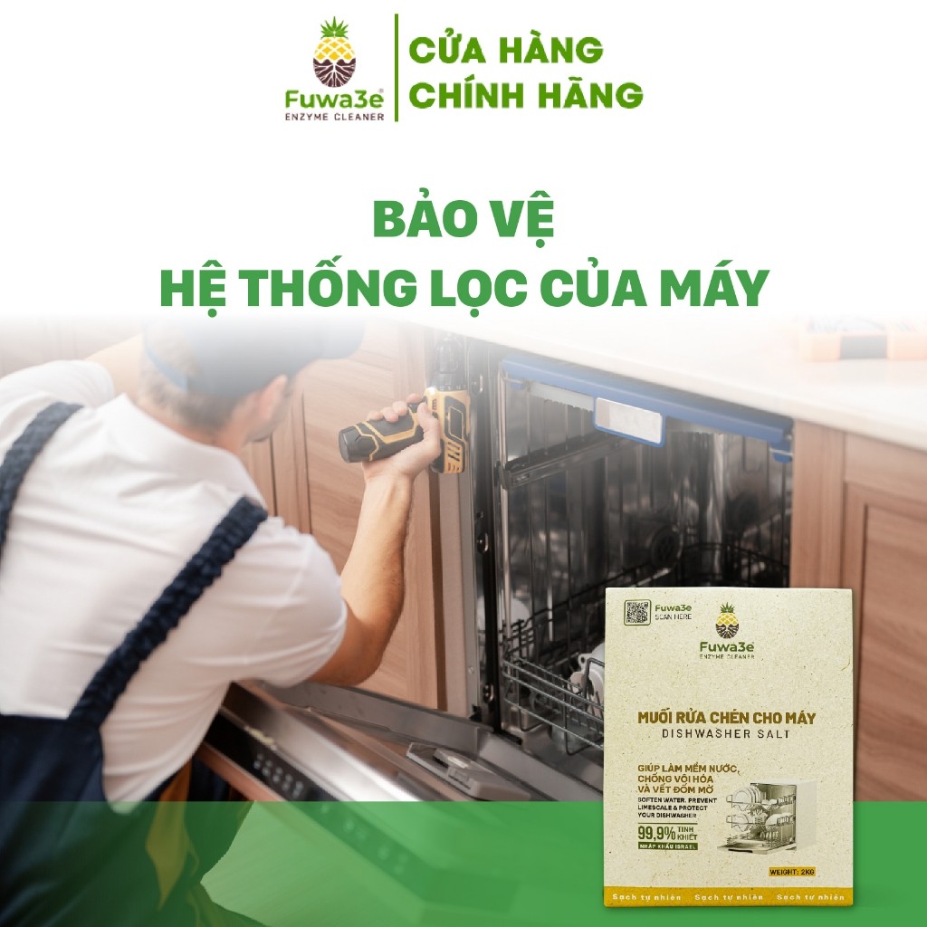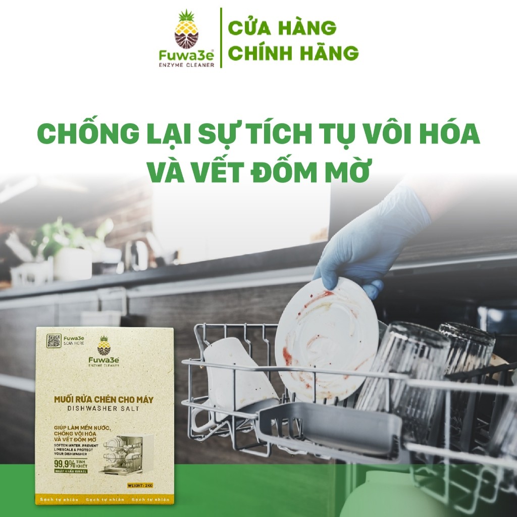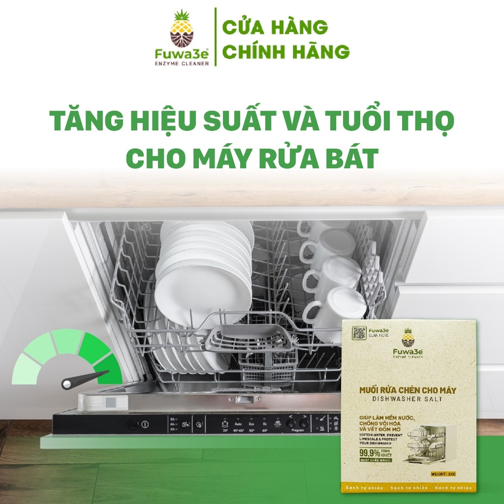 Công dụng của Muối rửa bát cho máy rửa chén bát Fuwa3e làm mềm nước 1kg :