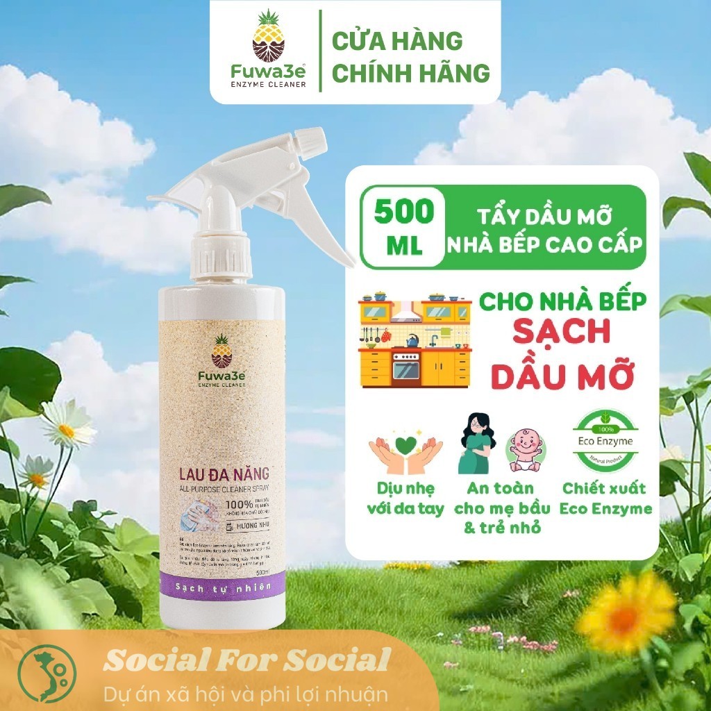 [Tặng 1 chai 100ML]Xịt Tẩy Dầu Mỡ Nhà Bếp Hữu Cơ Fuwa3e 500ml Làm Sạch Bếp Máy Hút Mùi Nồi Chiên Không Dầu Lò Nướng